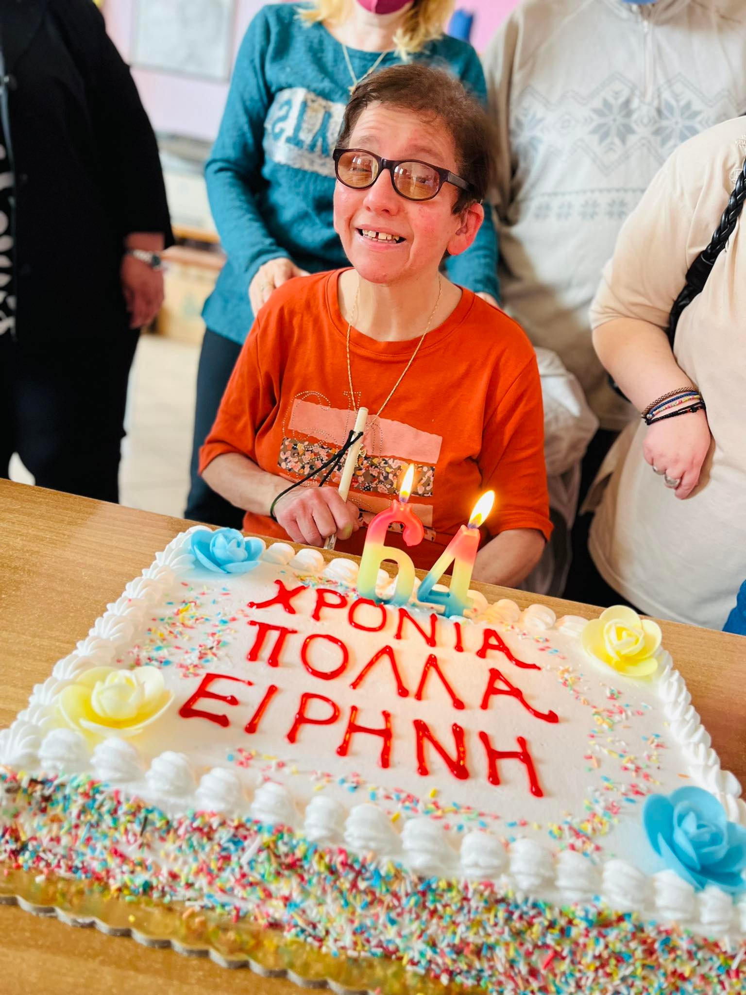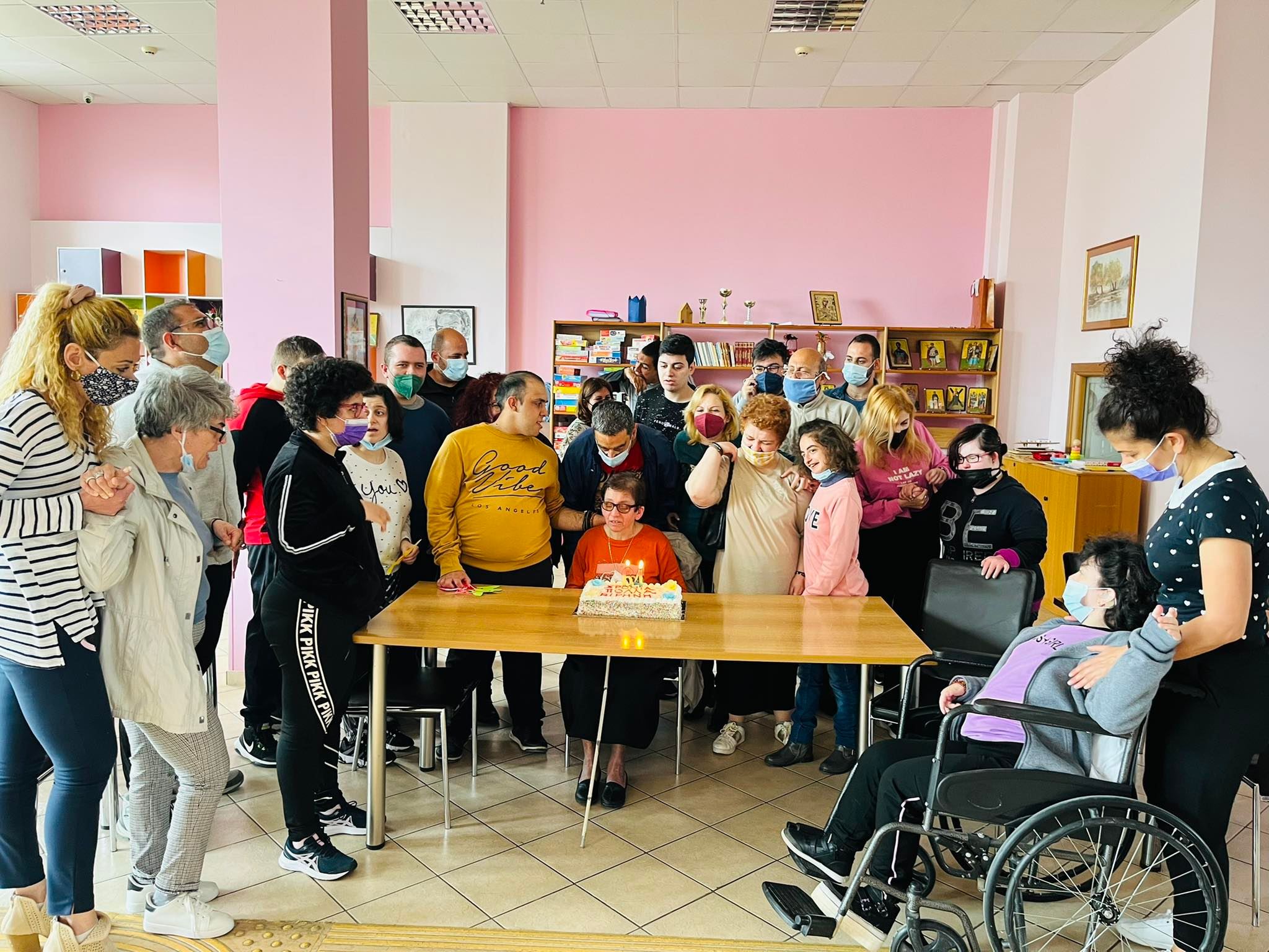 Ωφελούμενοι και προσωπικό τραγουδήσαμε και της ευχηθήκαμε να έχει υγεία, αγάπη και να είναι πάντα χαρούμενη.