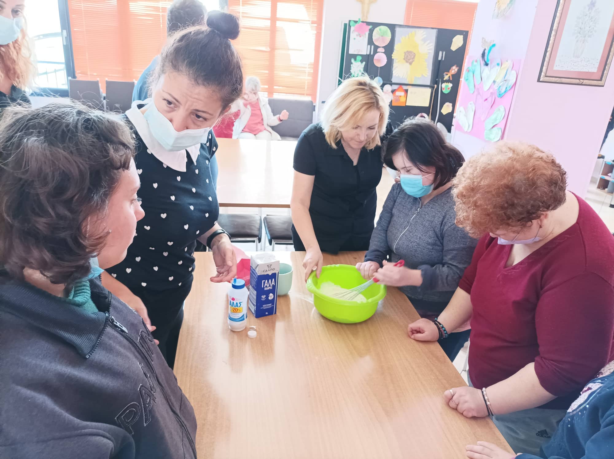 Παράλληλα έγινε προβολή βίντεο για τους σωστούς τρόπους διατροφής και στη συνέχεια συμπλήρωσαν φύλλα εργασίας. Τέλος τα παιδιά σε συνεργασία με το προσωπικό έφτιαξαν πανκεικ που περιελάμβαναν υγιεινά συστατικά![]()
