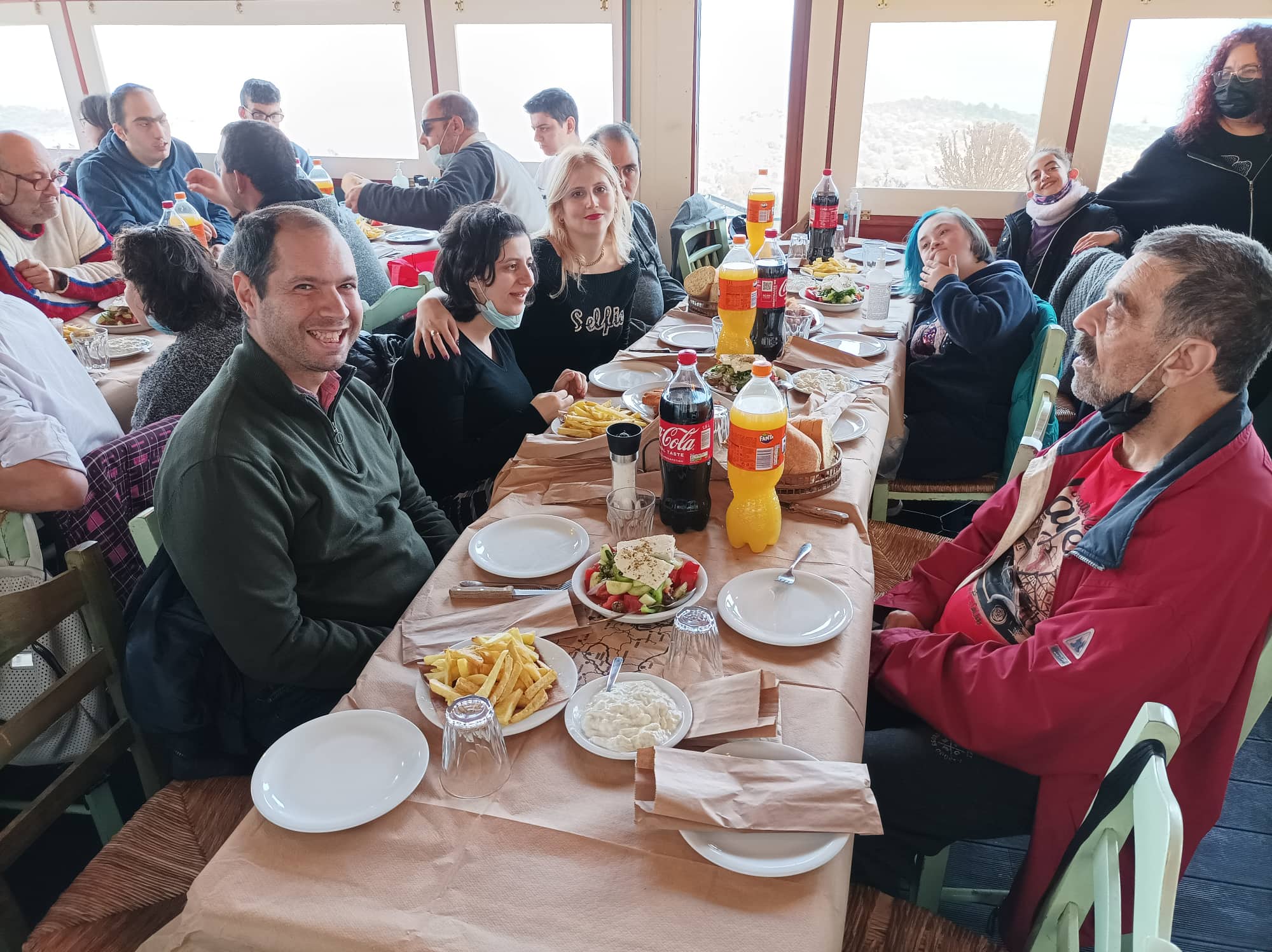 όπου προσωπικό και ωφελούμενοι προσκυνήσαμε και ανάψαμε κεράκι που μας προσέφερε ο Πάτερ Ακίνδυνος μαζί με μια εικονίτσα. Η εκδρομή μας συνεχίστηκε στην ταβέρνα του Αντώνη όπου απολαύσαμε ένα υπέροχο γεύμα ![]()