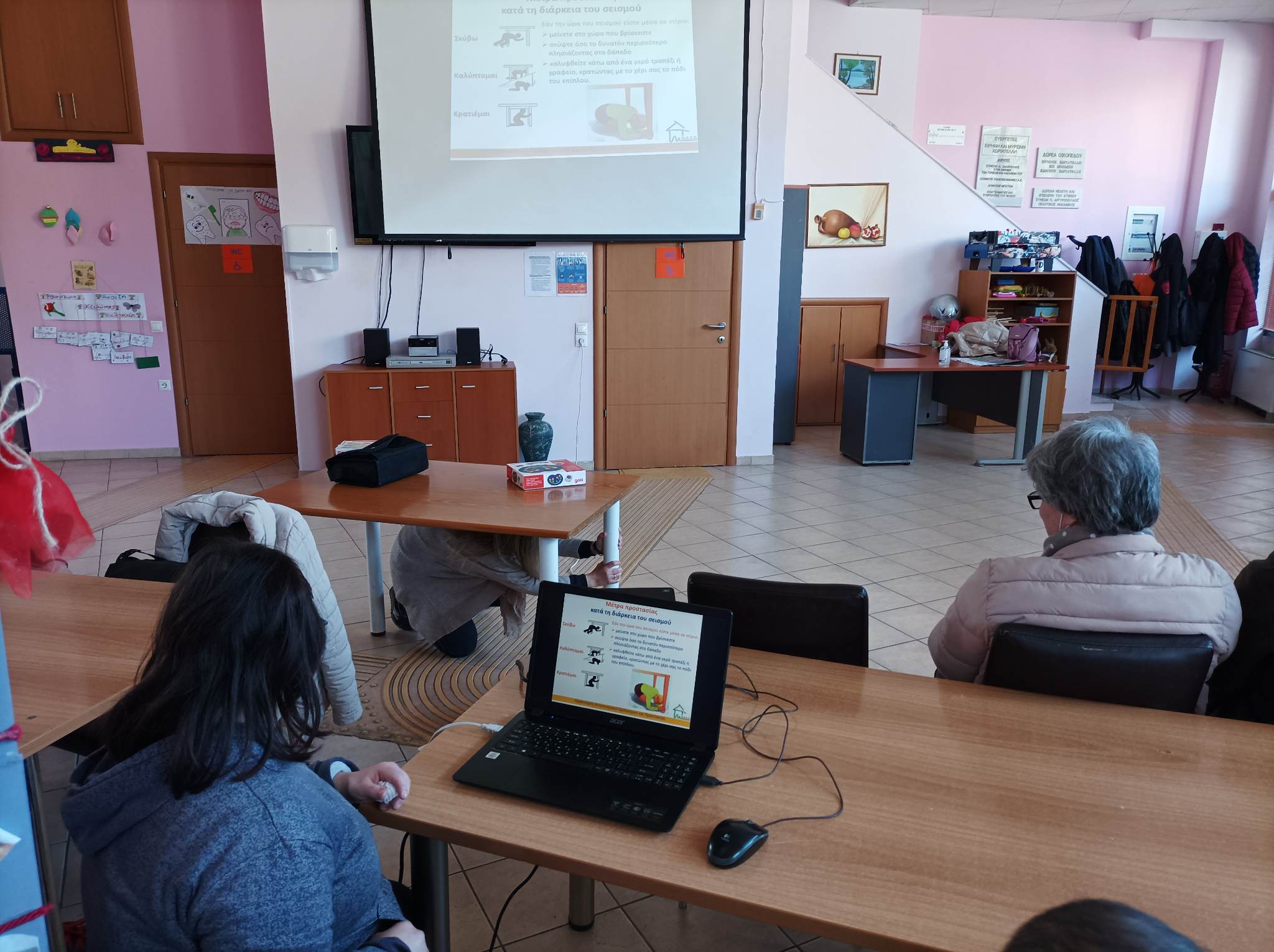 Μέσα από μια φιλικότατη παρουσίαση προσαρμοσμένη στους ωφελούμενους μας, η κ. Μπεντάνα αναφέρθηκε στο φυσικό φαινόμενο των σεισμών, καθώς και στα μέτρα προστασίας που πρέπει να τηρούμε πριν, κατά τη διάρκεια και μετά από την εκδήλωση ενός σεισμού.