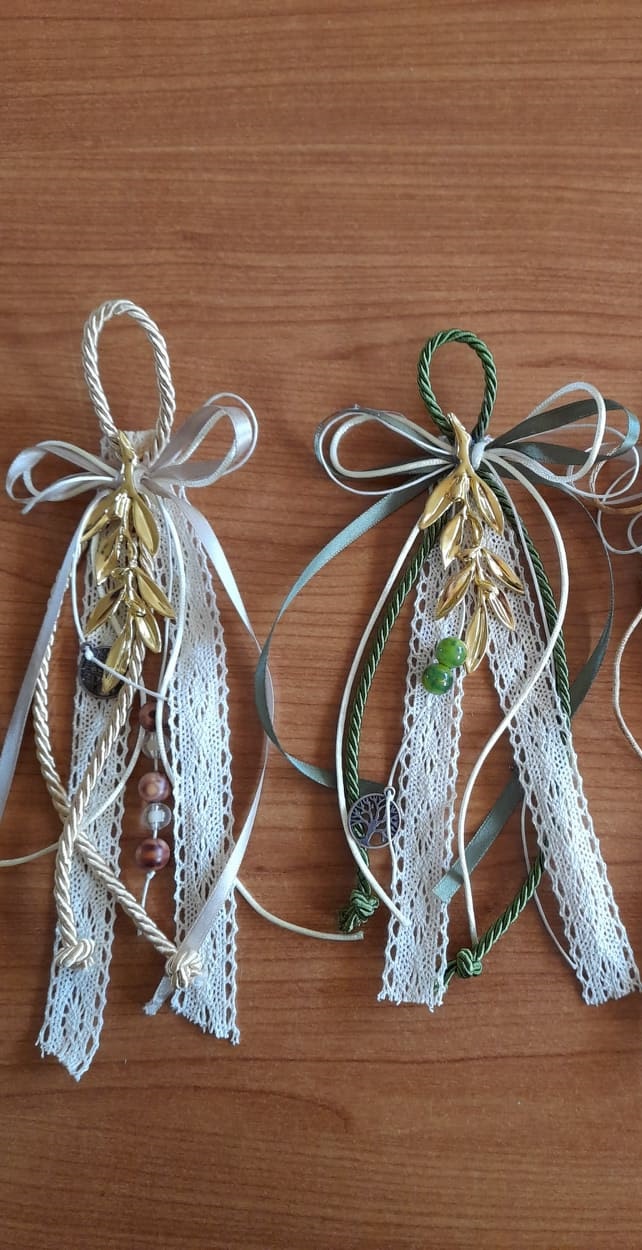 Γούρια με μεταλλικά χρυσά κλαδιά ελιάς.