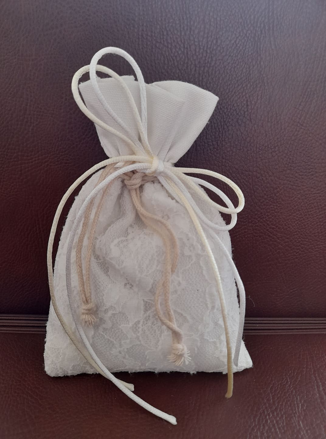Μπομπονιέρα Πουγκί Λινάτσα με Δαντέλα