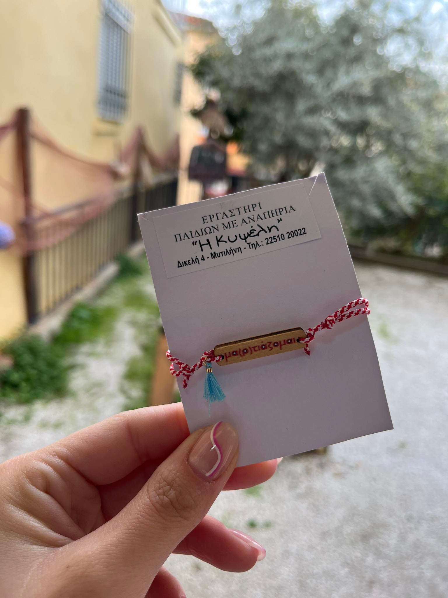 Μαρτάκι με σύμβολο ''μα(ρ)τιάζομαι'' , με λεπτή ή χοντρή κλωστή.