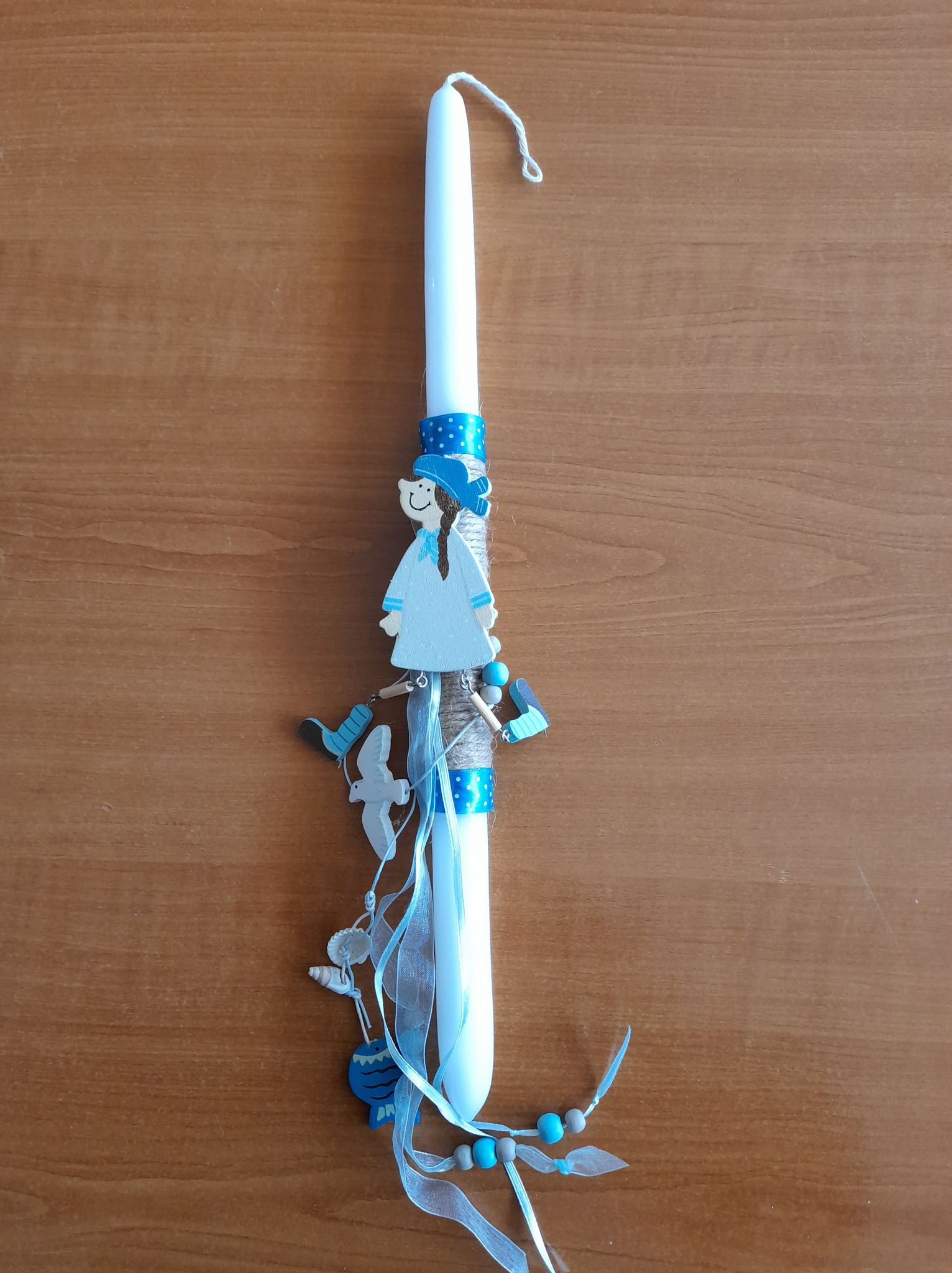 Χειροποίητη Λαμπάδα με ξύλινο διακοσμητικό.