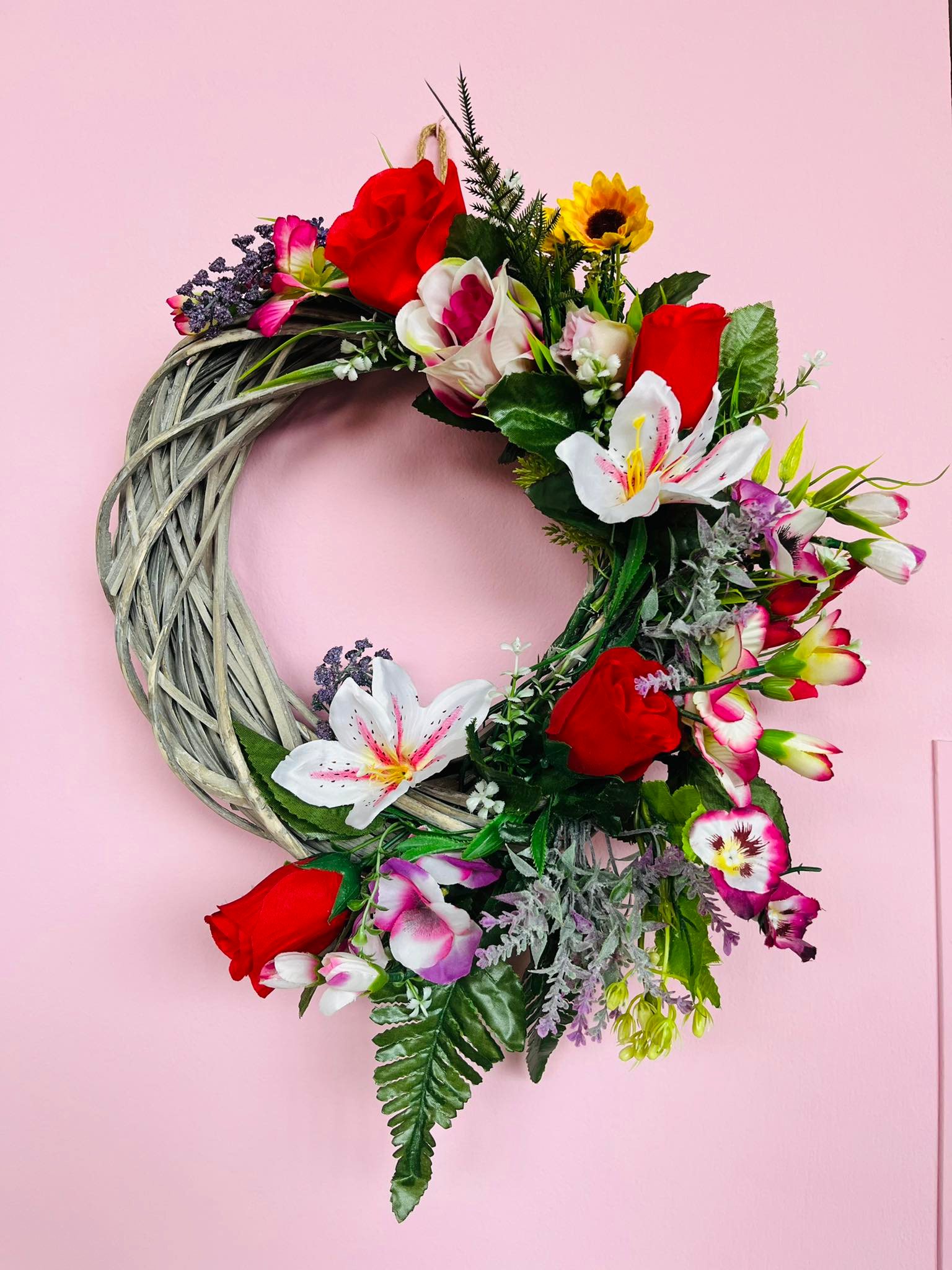 Στεφάνι από πλαστικά λουλούδια μισοφέγγαρο