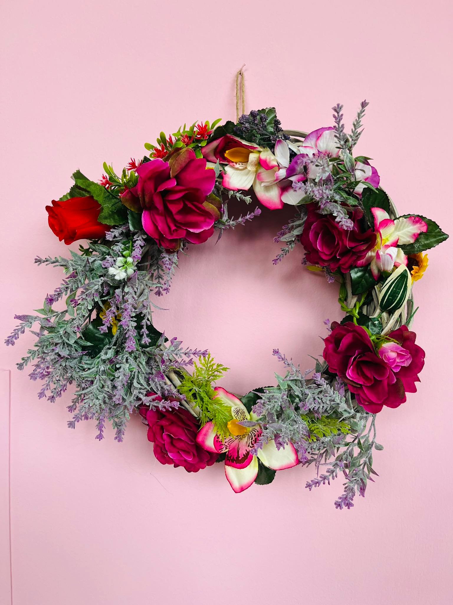 Στεφάνι γεμάτο από διάφορα λουλούδια